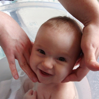 A hora do banho normalmente é a hora que ocorre mais insegurança. E se deixar o bebê escorregar? E se entrar água no ouvido? A hora do banho deve ser um momento de tranquilidade onde a maioria dos bebês adora e se sente relaxado. Já outros choram desesperadamente, mas isso é tudo questão de costume. Para as mães que têm medo do bebê escorregar, pode-se embrulhar o bebê em uma fralda de pano para dar mais segurança. Utilize sabonetes e shampoos sem fragrância, de preferência os neutros glicerinados que não causam alergias na pele. Perfumes, loções e colônias não são indicados para bebês recém-nascidos.