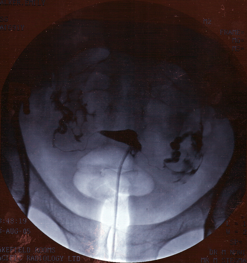 Após injetar o contraste, será necessário o tempo certo para o líquido se espalhar pelo sistema reprodutor e poder ser mapeado todo seu trajeto. Logo após, são realizadas as imagens de raio x como uma sequência, onde será avaliado o caminho feito pelo liquido, e constatado a existência de qualquer anomalia.